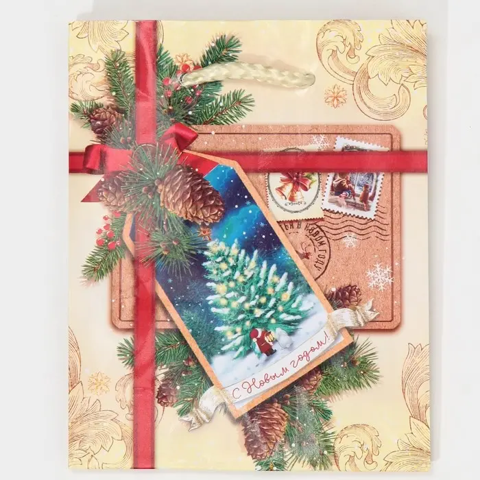 Пакет подарочный новогодний ламинированный «С Новым годом!», S 11.5 х 14.5 х 5.5 см