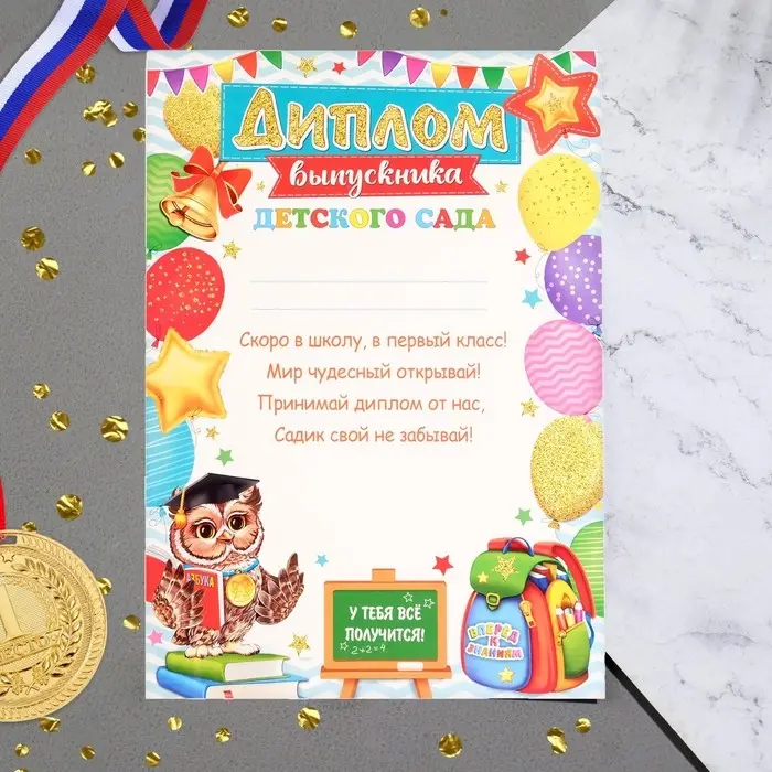 Диплом и медаль на Выпускной «Выпускника детского сада», 13,7 х 20,8 см, 250 гр/кв.м