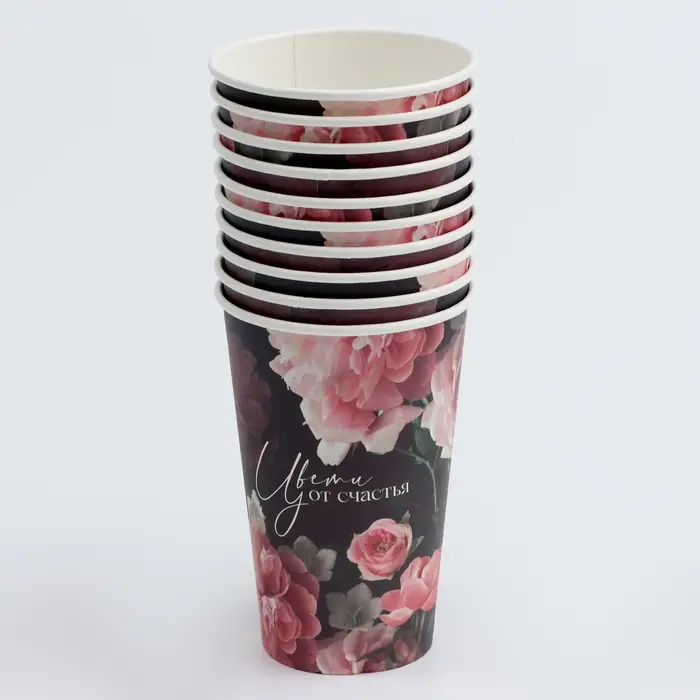 Стакан одноразовый бумажный для кофе "Цвети от счастья", 400 мл