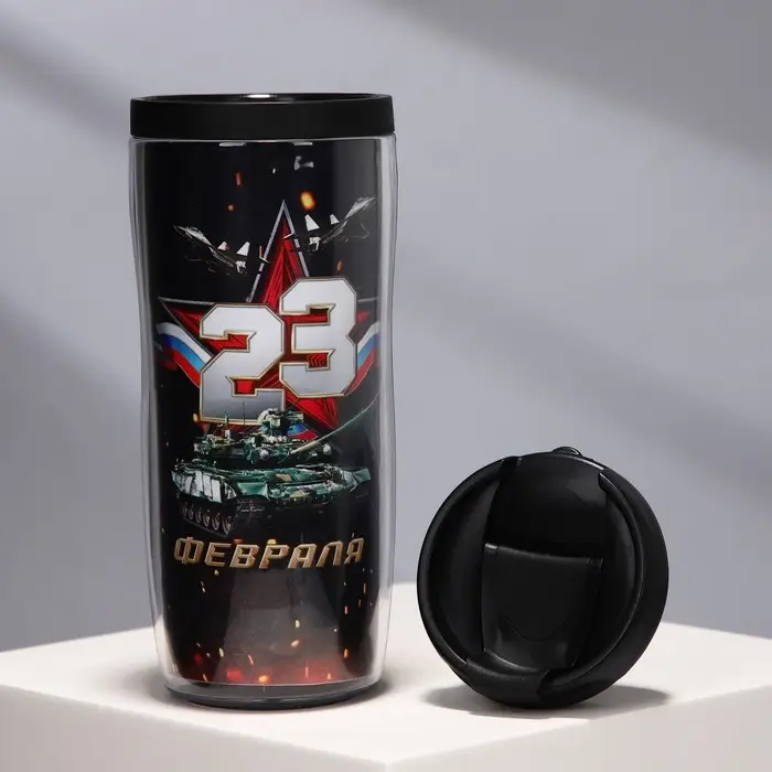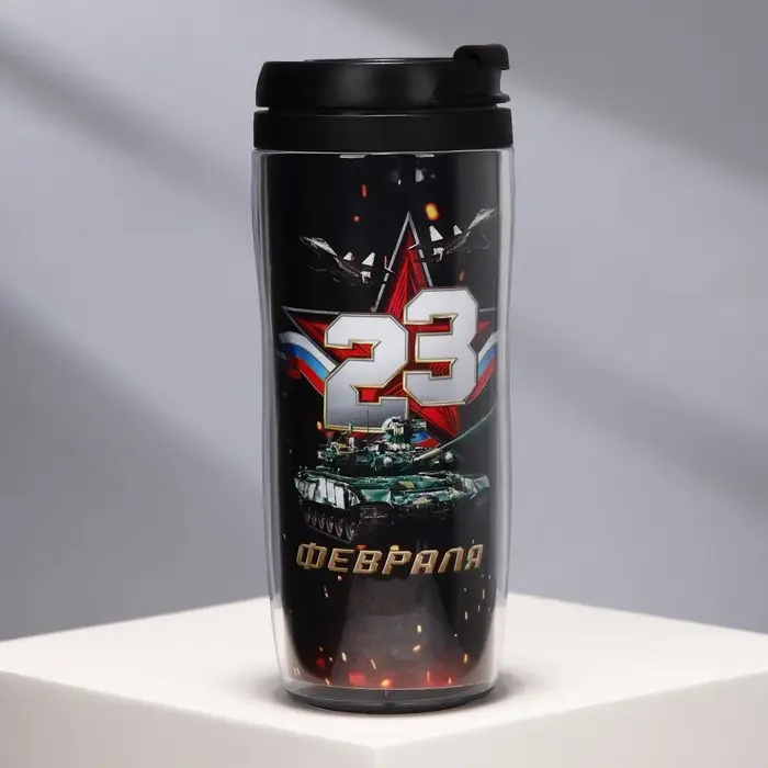 Термостакан пластиковый со вставкой «23 февраля. Танк», 350 мл