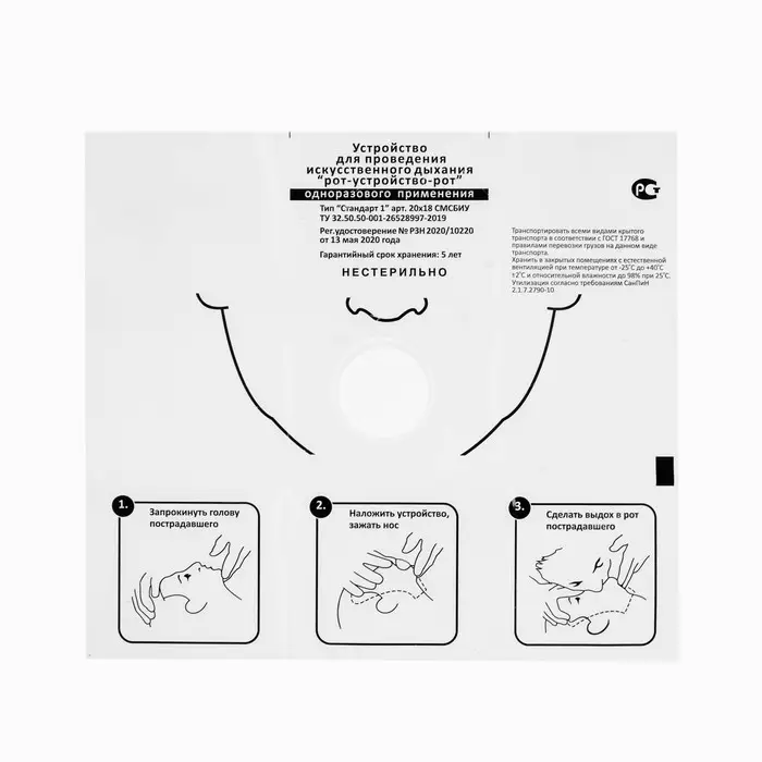 Устройство-маска предназначено для проведения искусственного дыхания рот в рот во время сердечно-легочной реанимации.