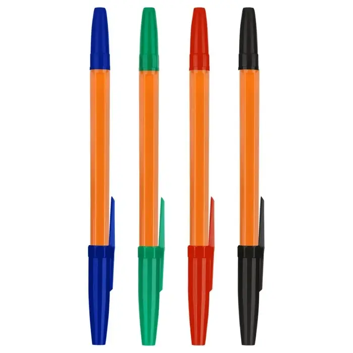 Набор шариковых ручек 4 шт. с чернилами синего, красного, чёрного и зелёного цвета. Благодаря классической шестигранной форме корпуса ручка комфортно лежит в руке. Диаметр пишущего узла: 1 мм, толщина линии письма: 0,7 мм. Длина стержня: 133 мм. Износостойкий наконечник и чернила на масляной основе обеспечивают мягкое, ровное и комфортное письмо. Изделие изготовлено из качественных материалов, и идеально сочетает в себе функциональность и современный дизайн.