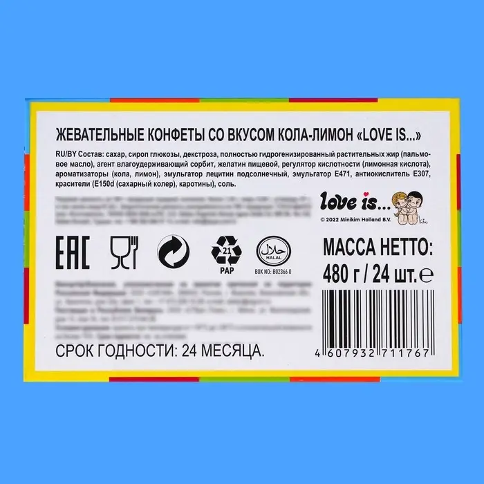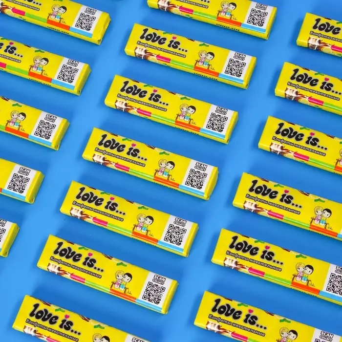 Жевательные конфеты с любимыми персонажами - новый формат всем знакомого вкуса. Это отличный мини-подарок своей второй половинке, ведь яркие вкладыши с надписями и рисунками способны растопить сердце и порадовать каждого.