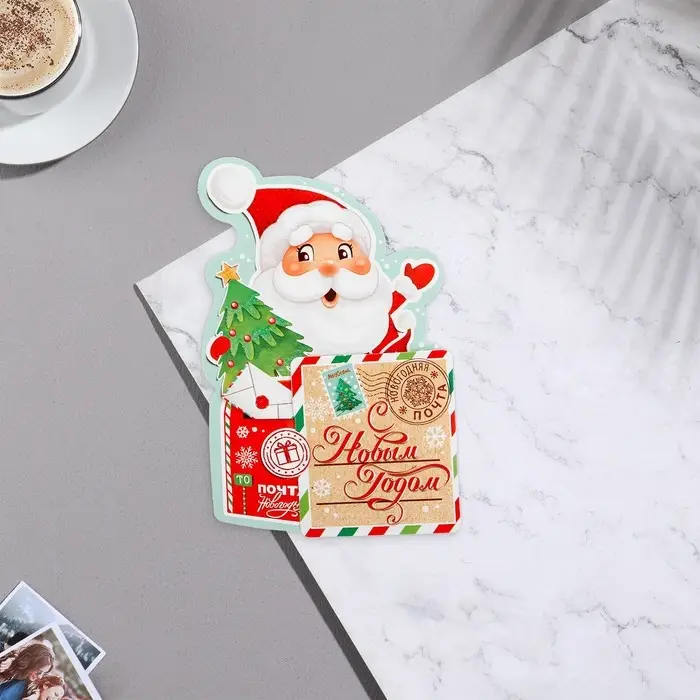 Мини-открытка "С Новым Годом!" глиттер, Дед Мороз, 19х13,5 см