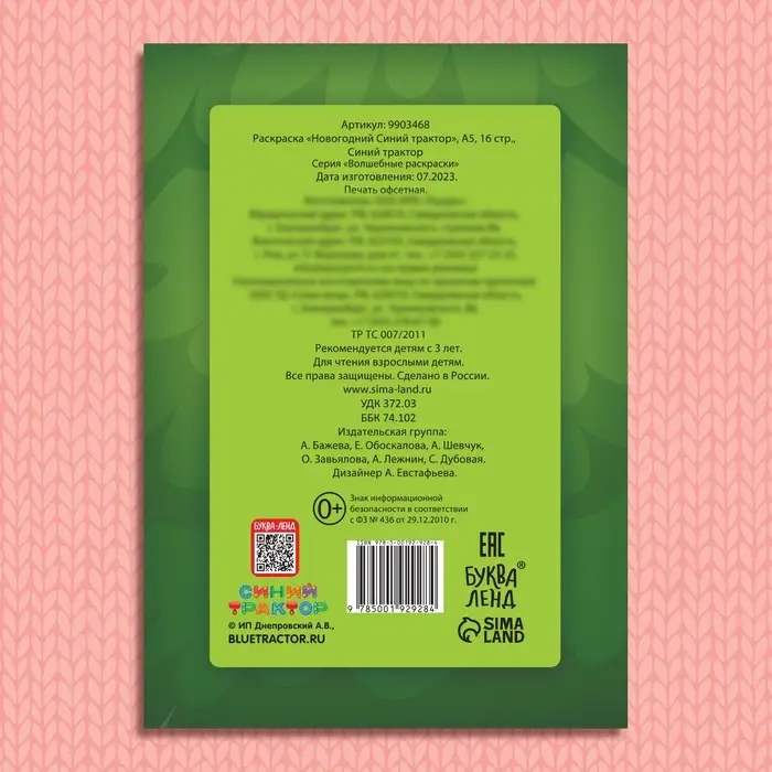 - 16 страниц с изображениями любимого мультгероя, Синего трактора, и его друзей.