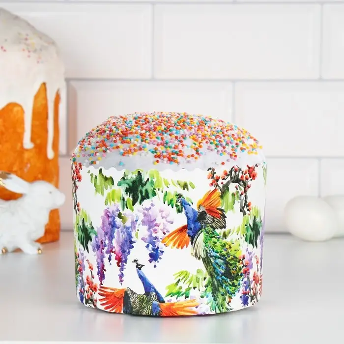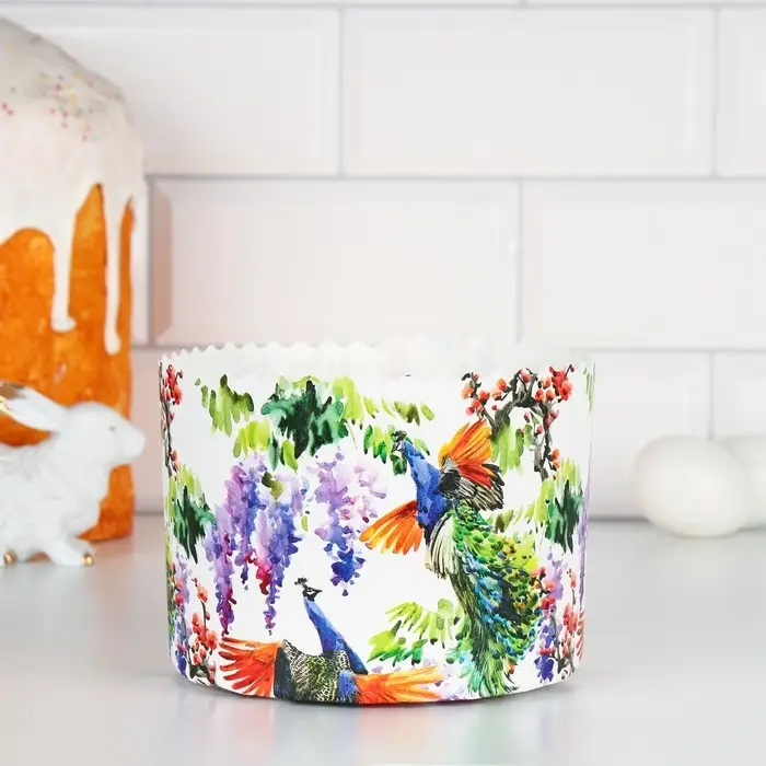Форма бумажная для кулича "Павлины" 134 х 100 мм