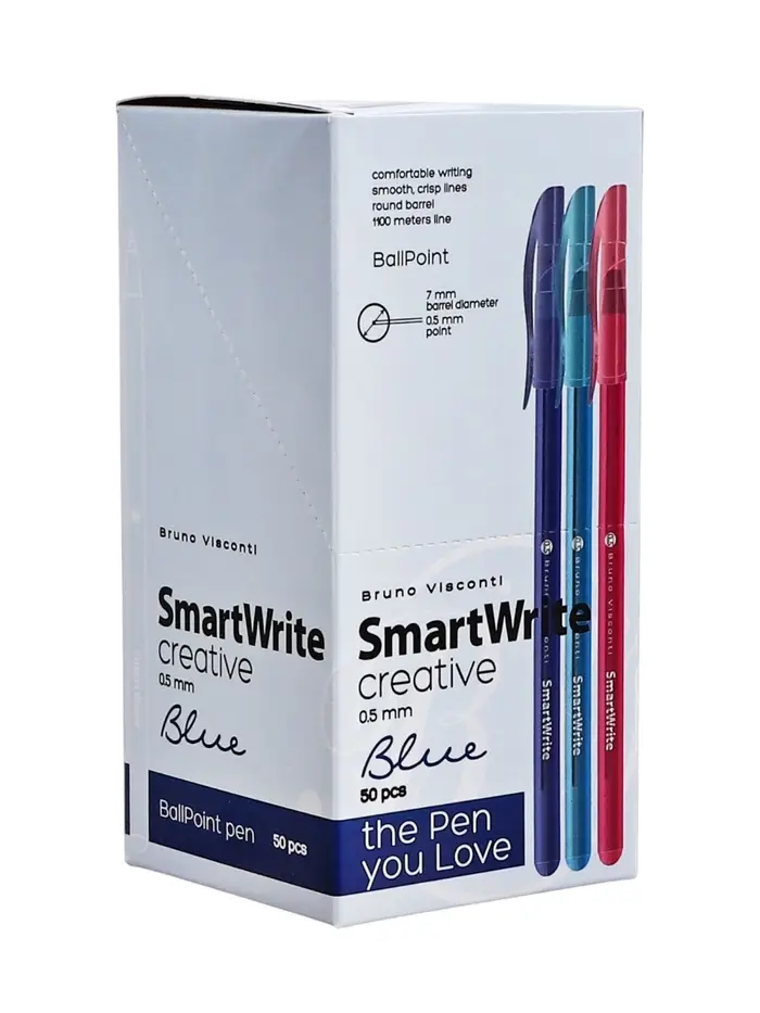 Ручка шариковая BrunoVisconti SmartWrite. Creative, 0.5мм, стерж/син МИКС