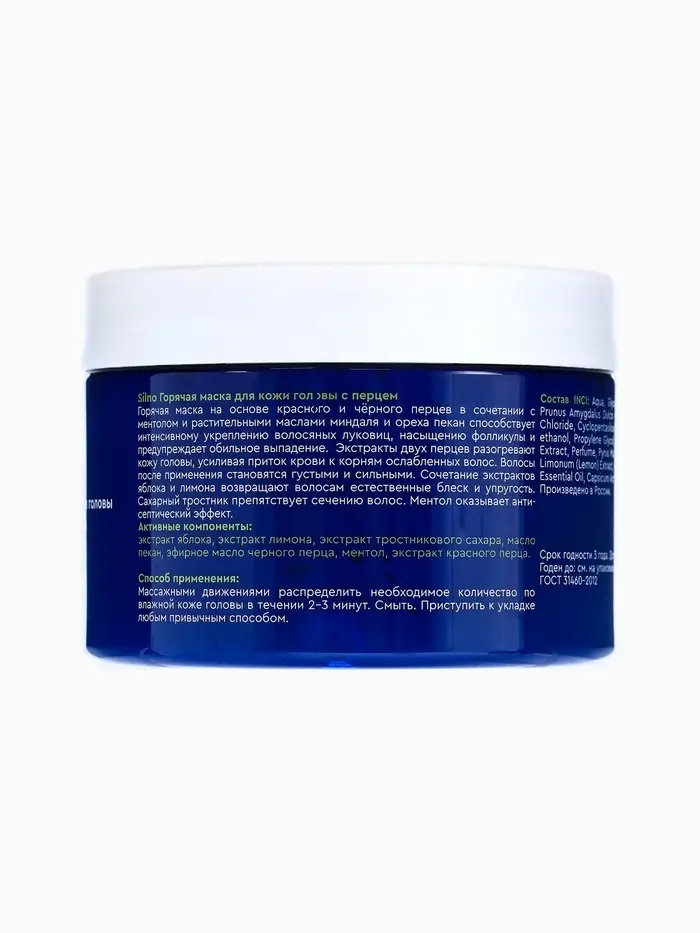 Маска для кожи головы Silno Горячая с маслами миндаля, ореха пекан, перцем и ментолом, 300 мл