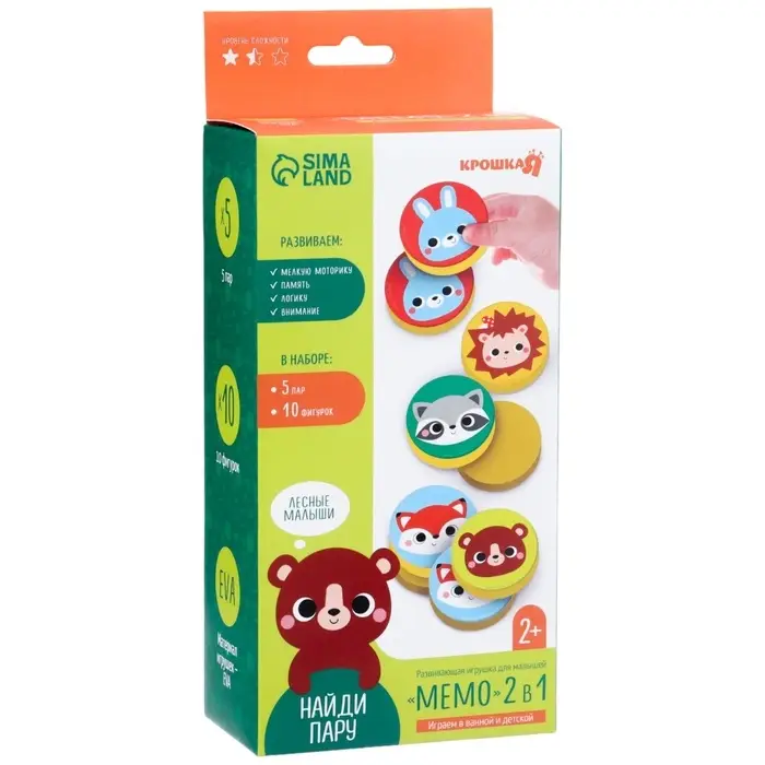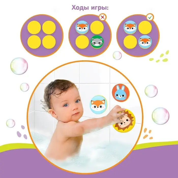 Мемо-игра: Присоски многоразовые для игры в ванной «Животные леса», найди пару, 5 пар, 10 стикеров EVA, Крошка Я