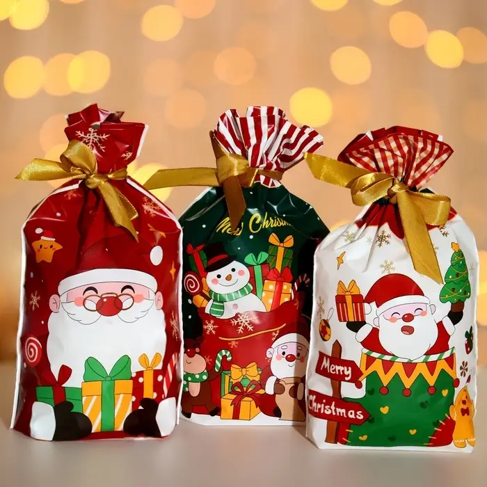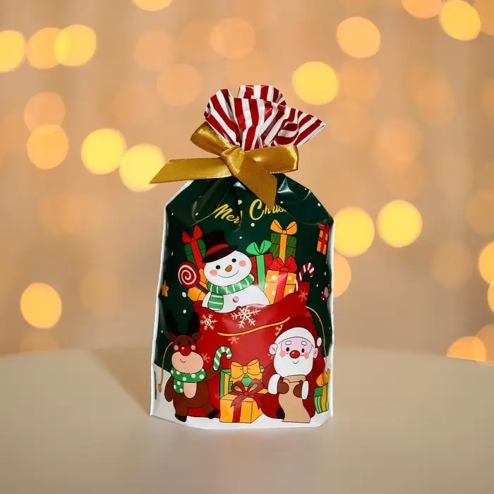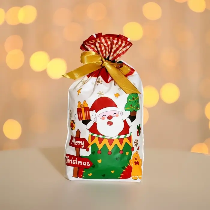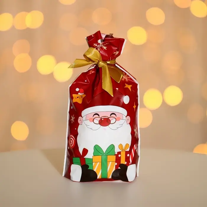Пакет мешочек полиэтиленовый новогодний с завязками - это стильный и практичный способ упаковки подарков.
