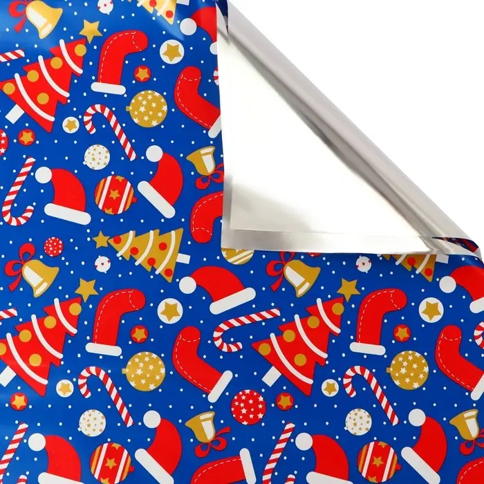 Пленка упаковочная для подарков, металлизированная, 35мкм "Новогоднее ассорти“, 50х70см
