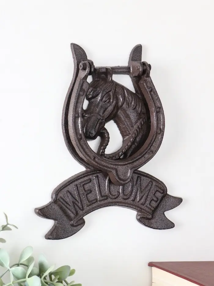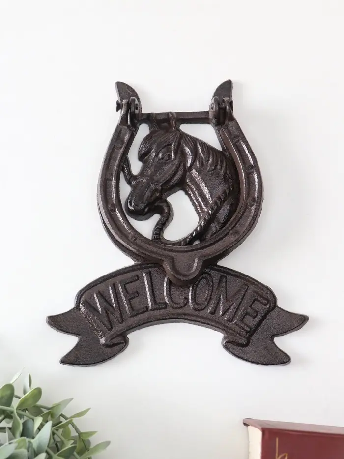 Дверной молоток чугун "Конь в подкове - Welcome" 18х2х21 см