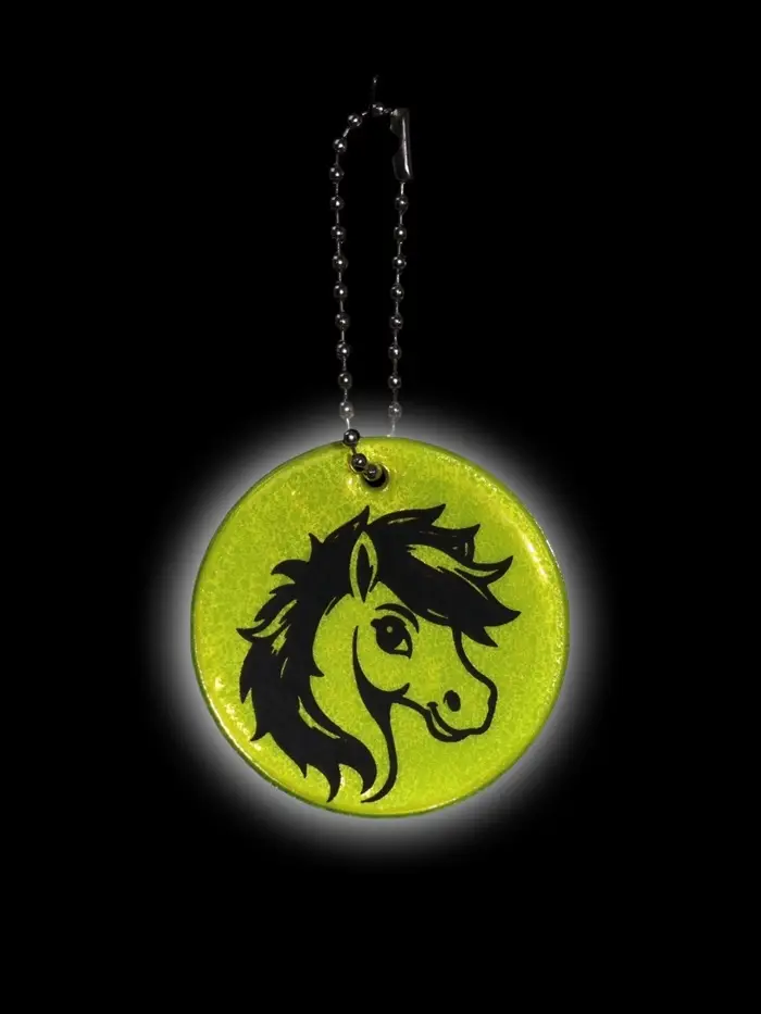 Светоотражающий элемент двусторон голова лошадки 4,7*4,7см цепочка салатовый АУ