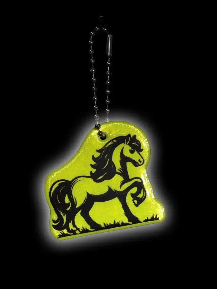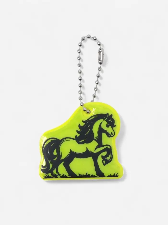 Светоотражающий элемент двусторон жеребец 4,8*4,4см цепочка салатовый АУ