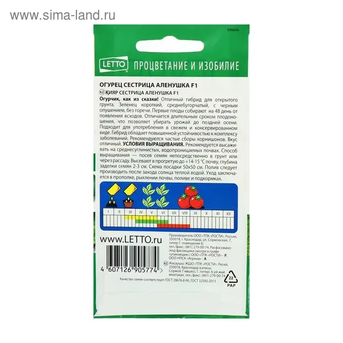 Семена Огурец Сестрица Аленушка F1, ранний, пчелоопыляемый, 0,3 гр