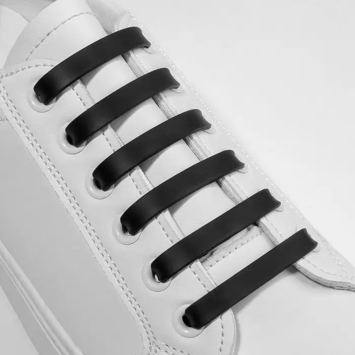 Шнурки для обуви, 6 шт., силиконовые, плоские, 13 мм, 9 см, чёрные
