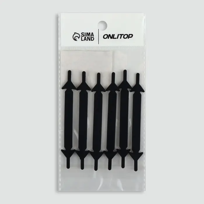 Набор шнурков для обуви, 6 шт, силиконовые, круглые, d = 3 мм, 6,5 см, цвет чёрный
