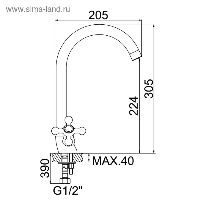 Cмеситель для кухни Accoona A4971, двухвентильный, с гайкой, латунь, хром