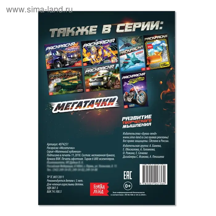 Раскраска «Мегатачки» объединила в себе всё, что так нравится мальчикам. Книжка познакомят малыша с различными видами транспорта. Ребёнок разрисует мощные внедорожники.