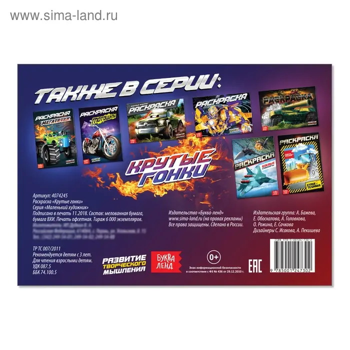 Раскраска для мальчиков «Крутые гонки», А5, 12 стр.