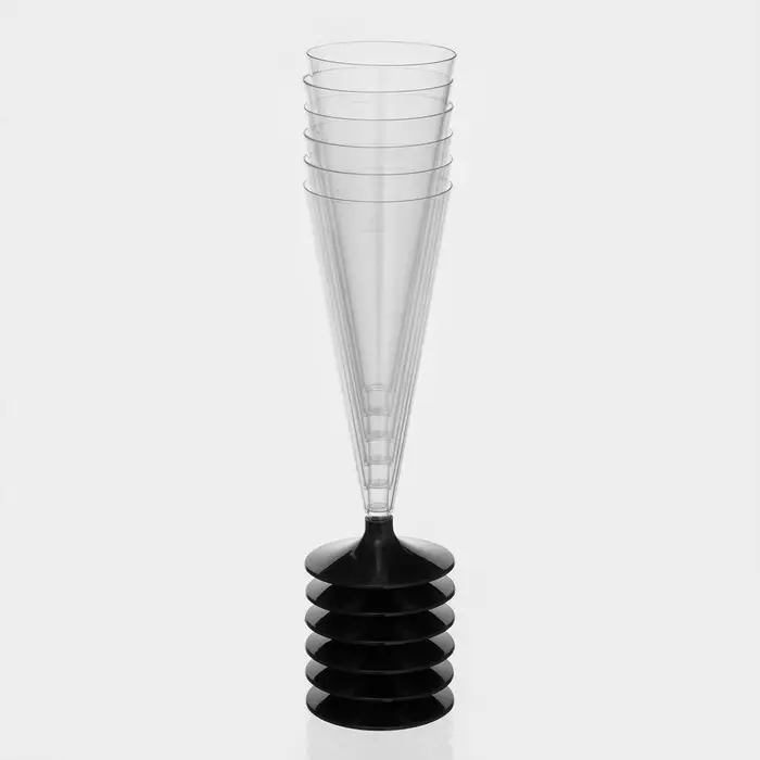 Бокал пластиковый одноразовый для шампанского «Флютэ», 150 мл, с металлизированными каемками, цвет прозрачный, 6 шт/уп