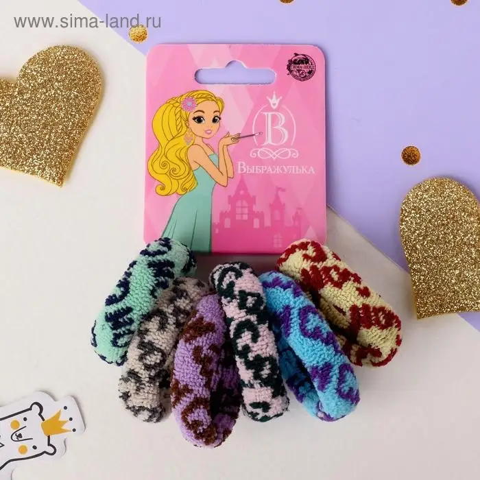 Резинка для волос "Махрушка" 5 см (набор 6 шт) рисунок