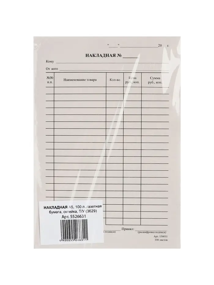 Бланк "Накладная" Calligrata, А5, газетка, 100 экземпляров, в пленке т/у