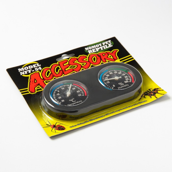 Аналоговый термометр + гидрометр NomoyPet - это незаменимый инструмент для тех, кто заботится о своих рептилиях и других животных, обитающих в террариуме. Этот прибор позволяет контролировать температуру и влажность внутри террариума, что является важным фактором для здоровья и комфорта животных.