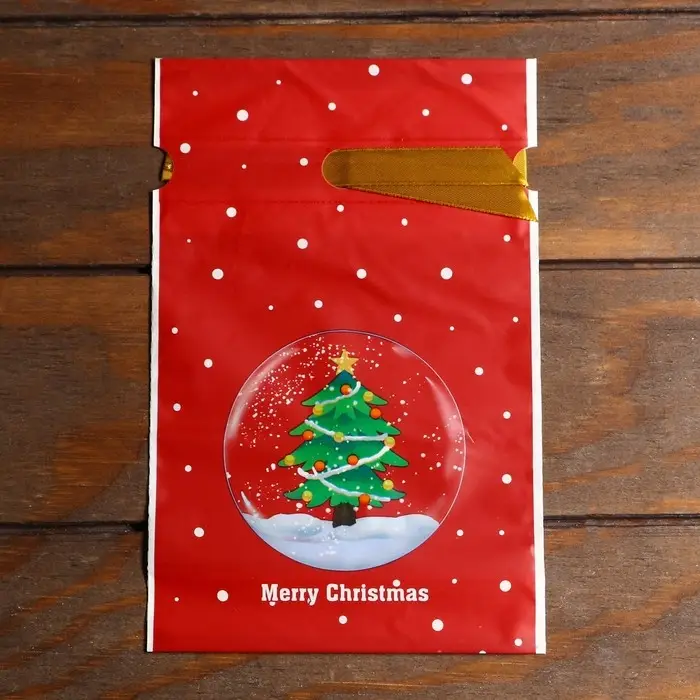Пакет полиэтиленовый подарочный «Новогодний шар», с завязками, 15×23 см