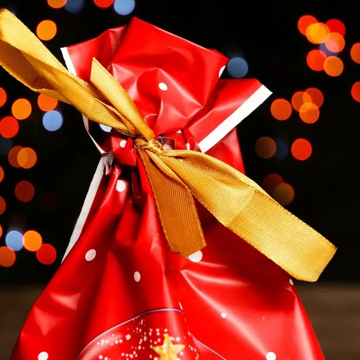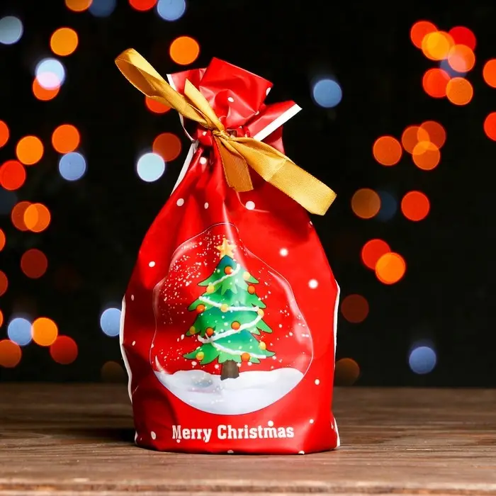 Пакет полиэтиленовый подарочный "Новогодние подарки", с завязками, 15*23см.