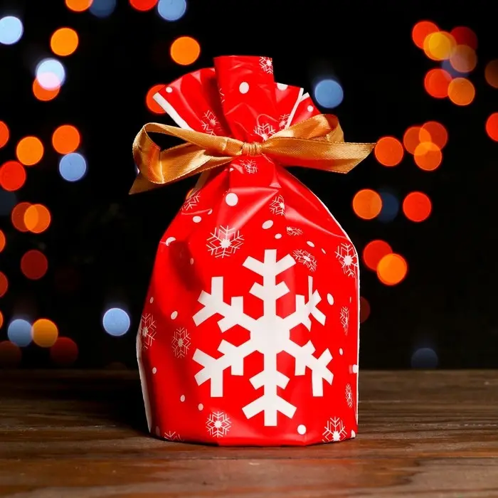 Пакет полиэтиленовый подарочный "Новогодние подарки", с завязками, 15*23см.