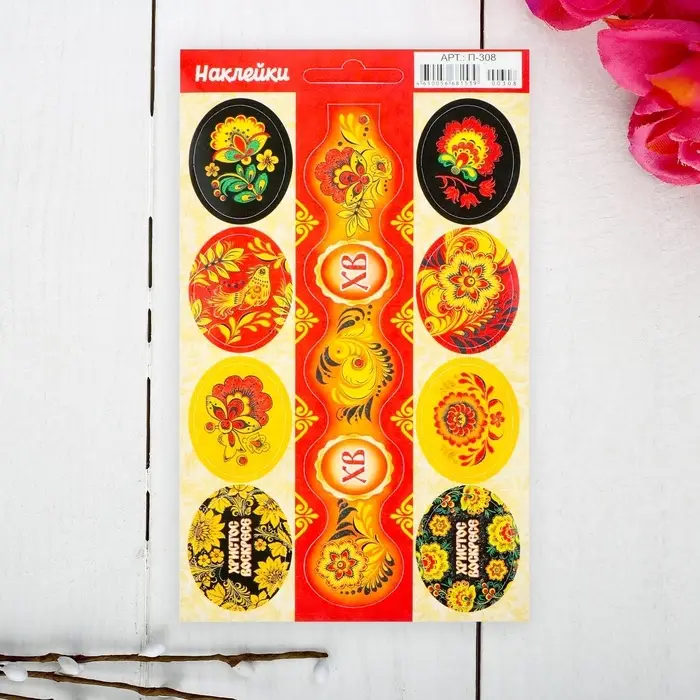 Наклейки пасхальные "Хохлома" с глиттером
