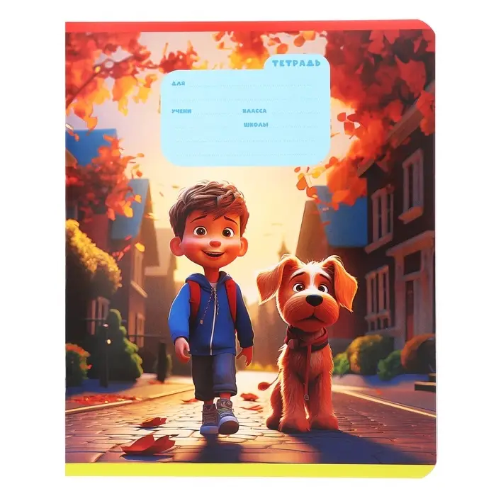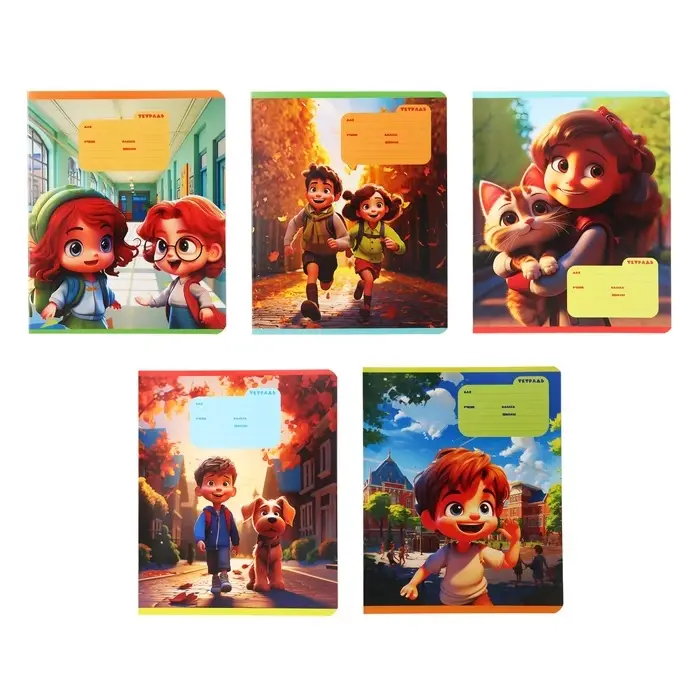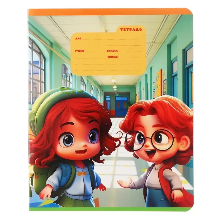Тетрадь 12 листов в крупную клетку на скрепке "Друзья", обложка мелованный картон, ВД-лак, МИКС