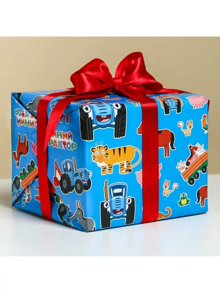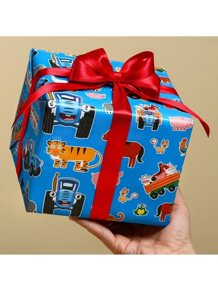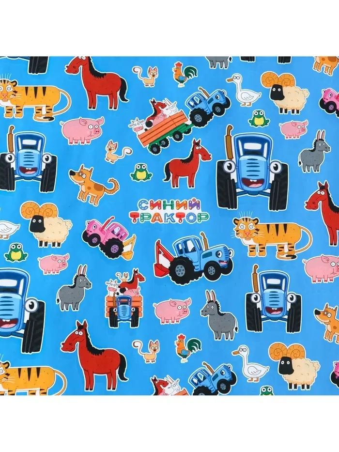 Бумага упаковочная глянцевая, Синий трактор, 70х100 см