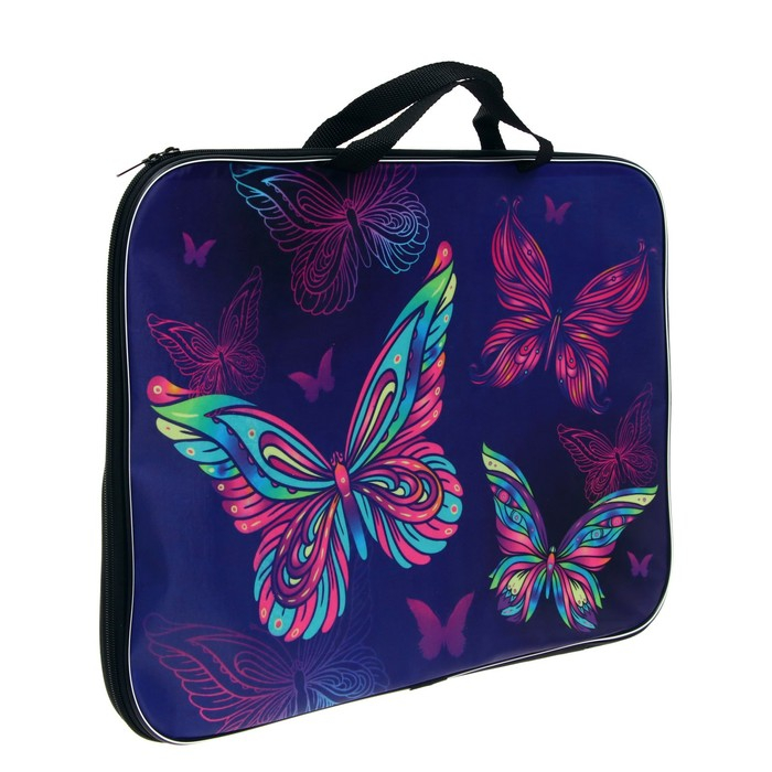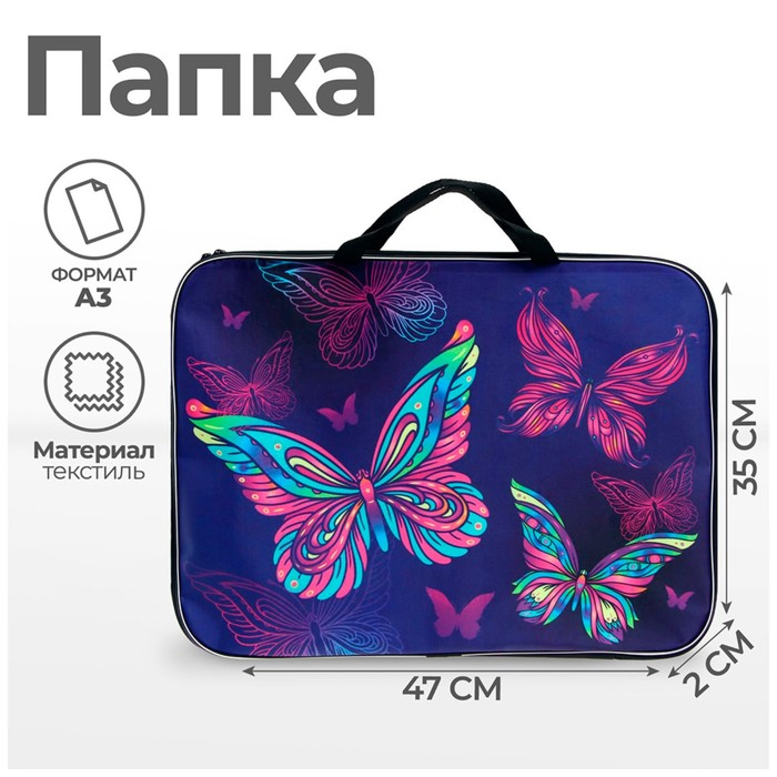 Папка для чертежей и рисунков А3, 470 х 350 х 20 мм, с ручками, текстильная, Calligrata "Бабочки"