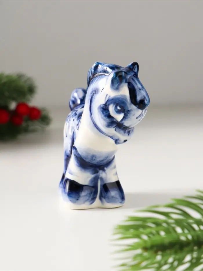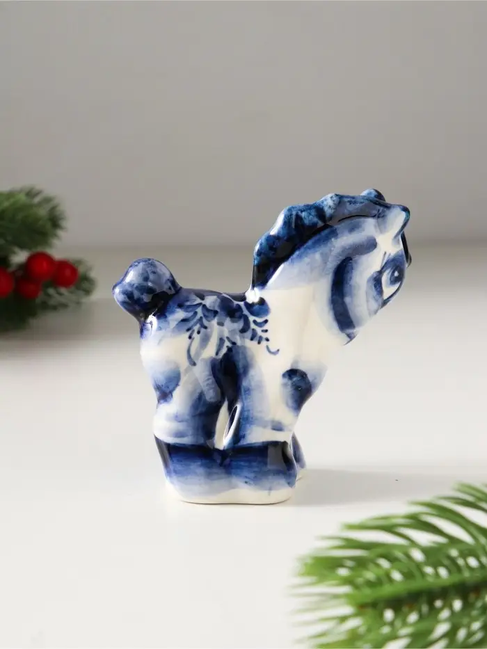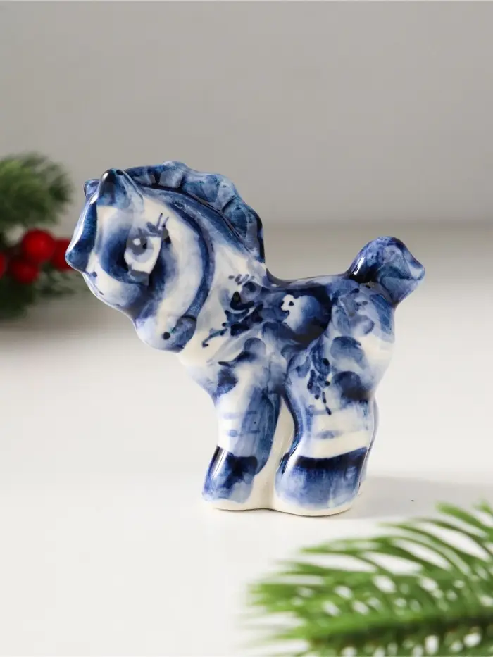 Сувенир Конь Яхонт, 8х8,5х3,5 см, гжель