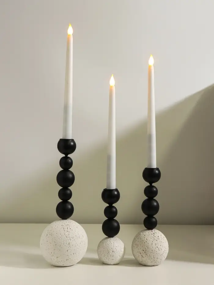 Подсвечник металл, бетон "Шарики" d=2 см набор 3 шт 5,5х16,5 7,5х20,5 10х10х26,5 см