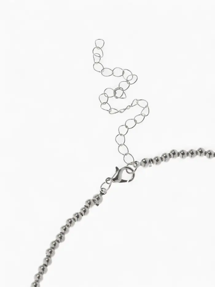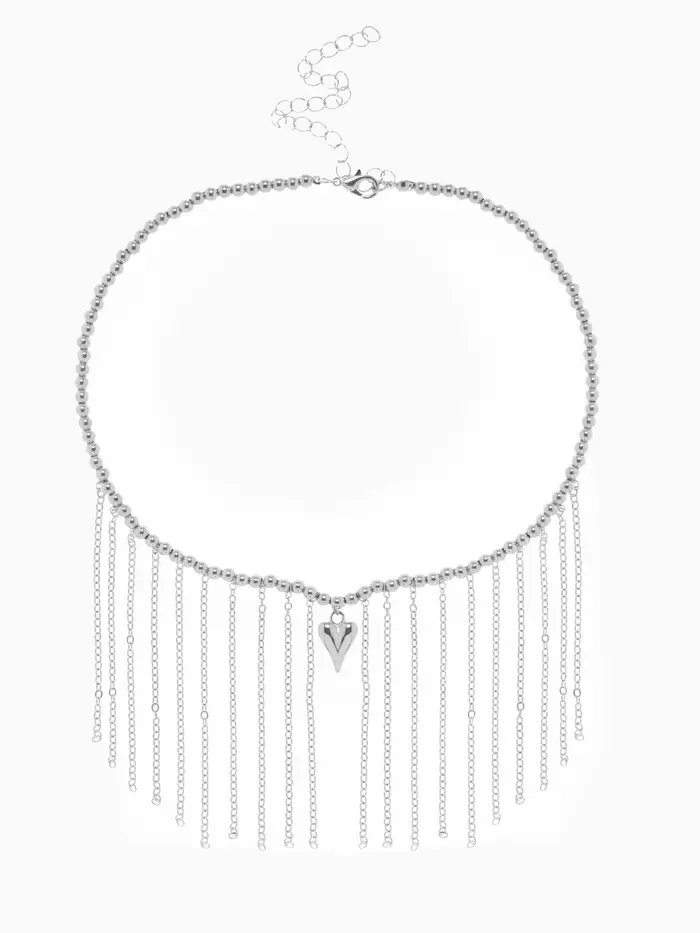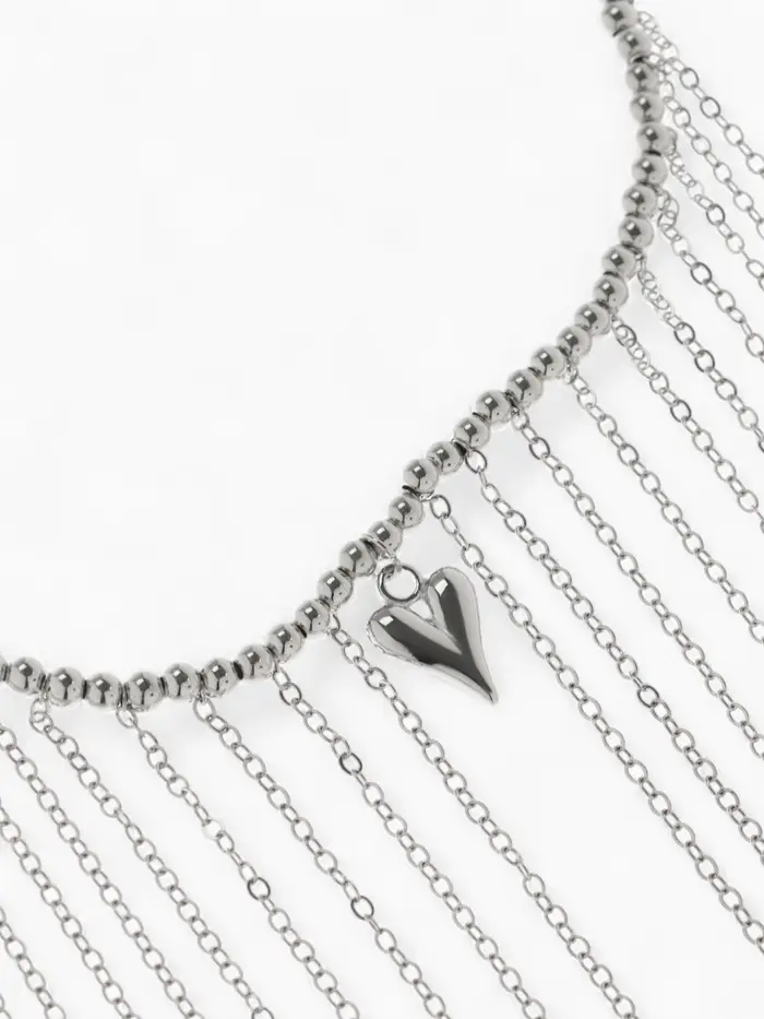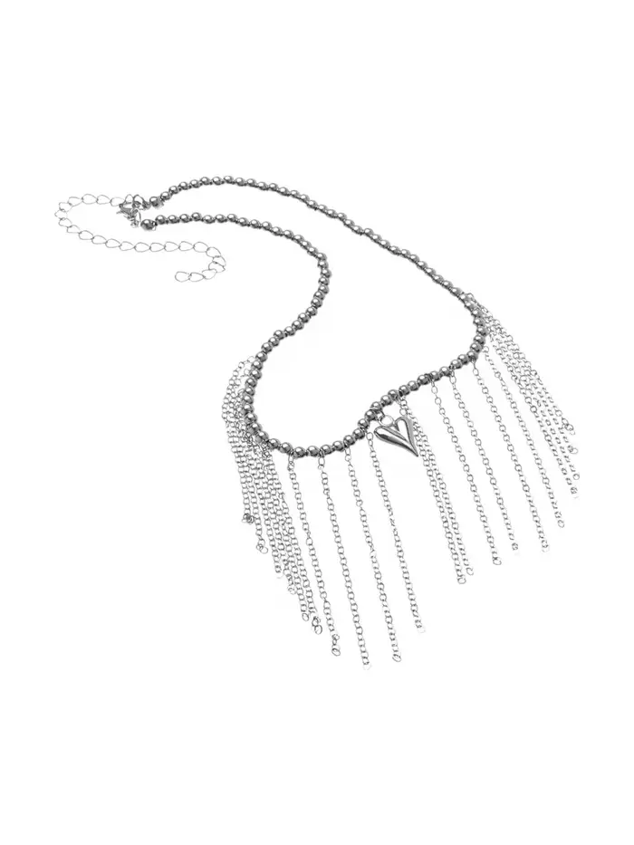 Колье "Сердце" водопад с бусинами, цвет серебро