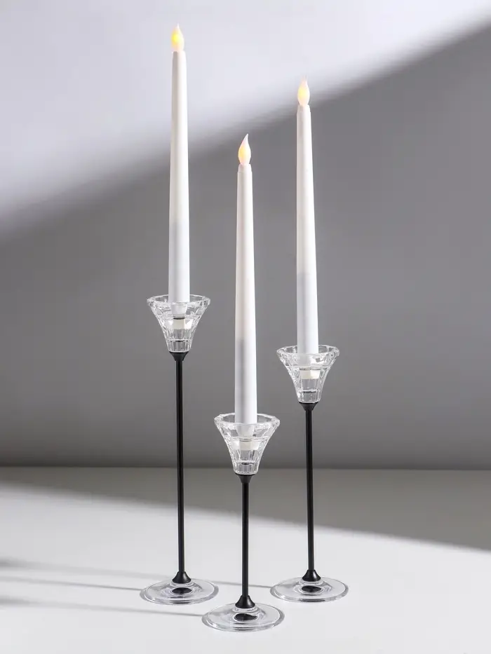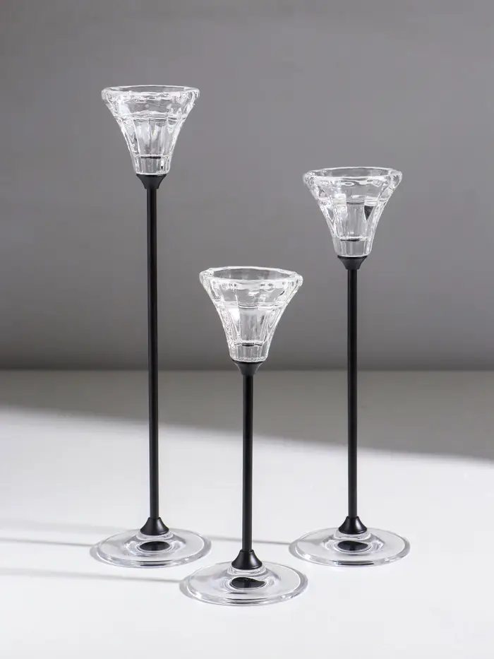 Подсвечник металл, стекло "Нил" d=2 и 4 см набор 3 шт прозрачный 7х7х18 7х7х23 7х7х28 см