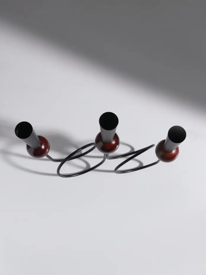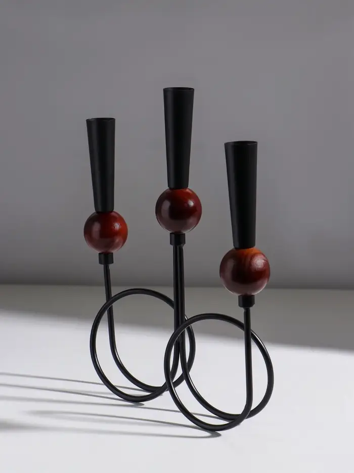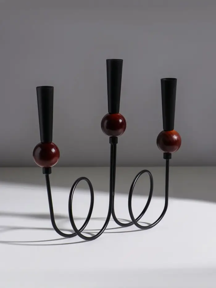 Подсвечник металл, дерево "Параллельные вселенные" d=2,2 см чёрный 25х3,5х27,3 см
