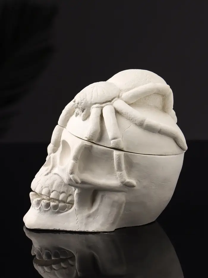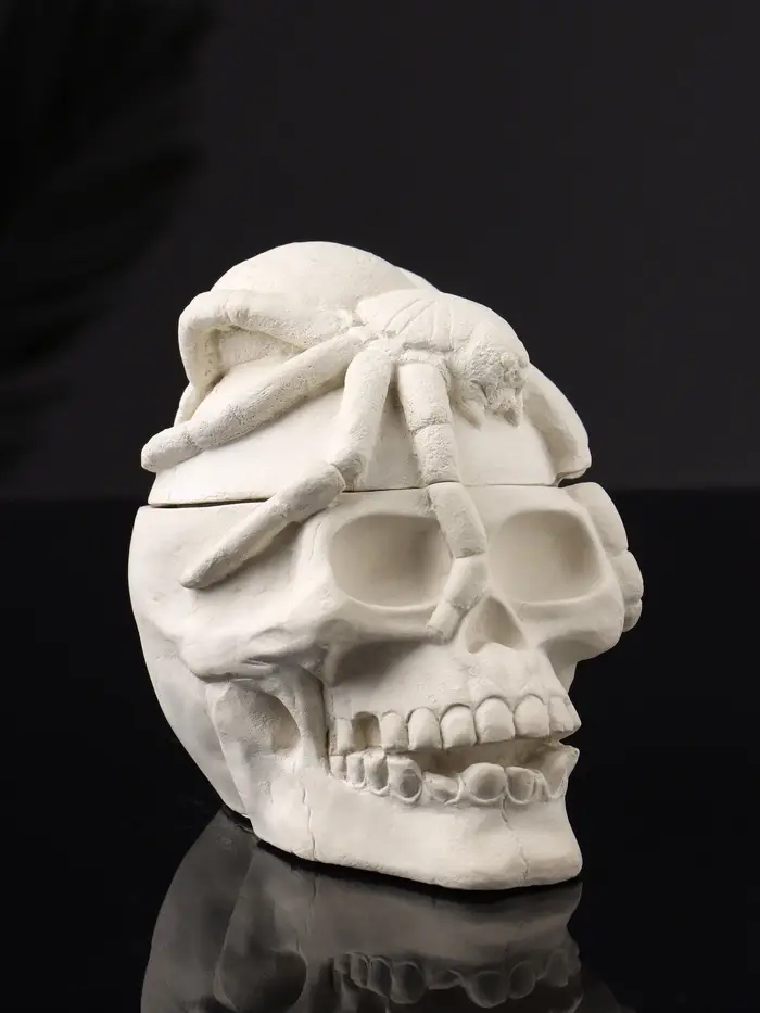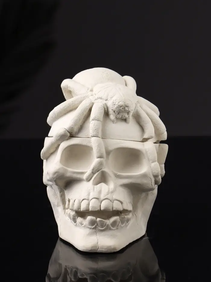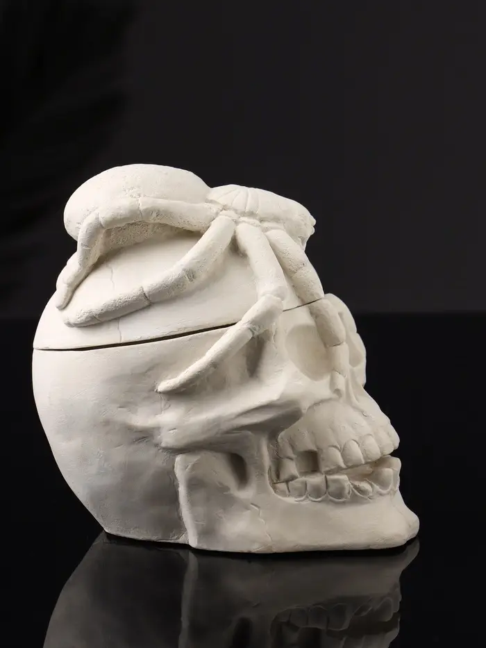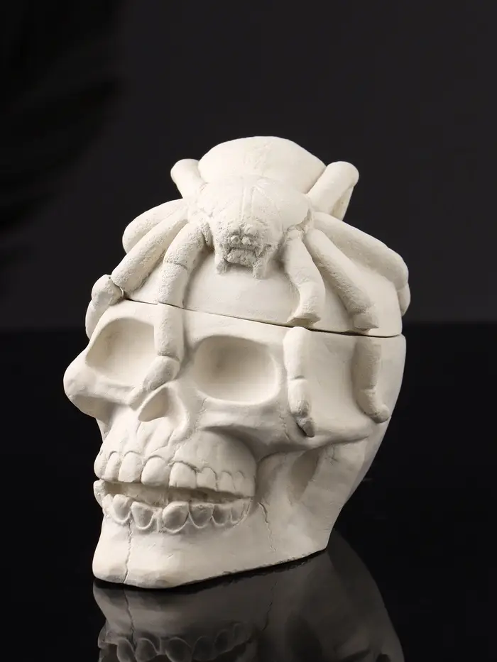 Шкатулка с крышкой "Череп" 10х9х8 см, натуральный, гипс