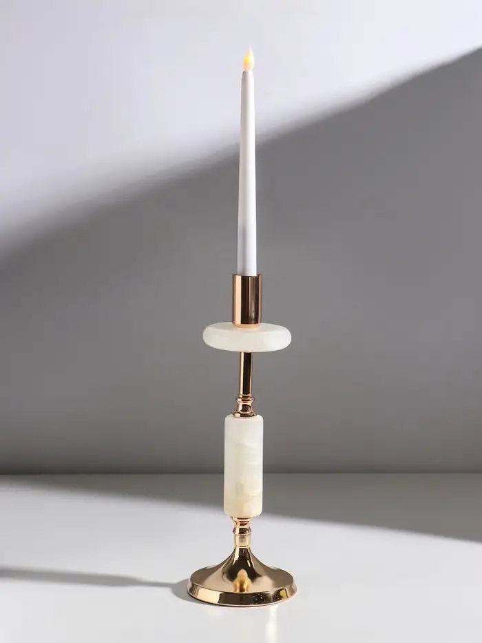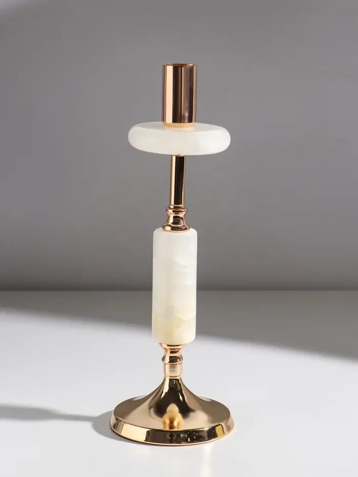 Подсвечник металл, камень на 1 свечу "Рим" золото 10,5х10,5х31 см
