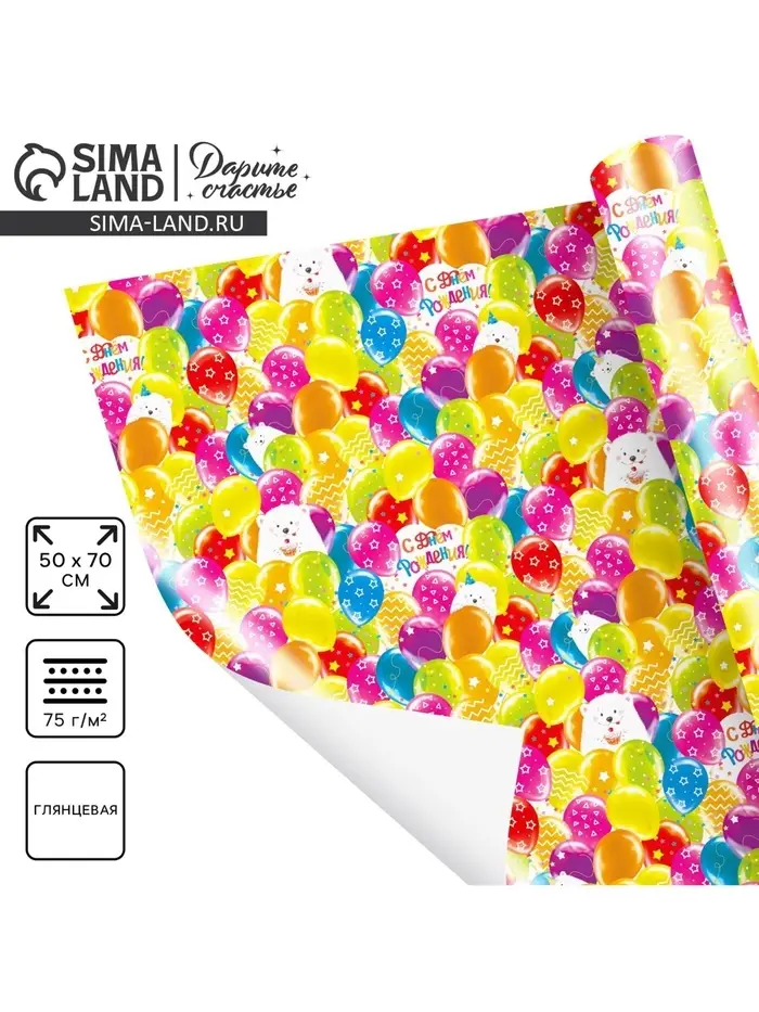 Бумага упаковочная глянцевая «Яркие шарики», 50 х 70 см