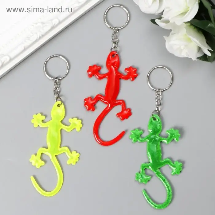 Брелок пластик светоотражающий "Ящерица" МИКС 8х4,2 см