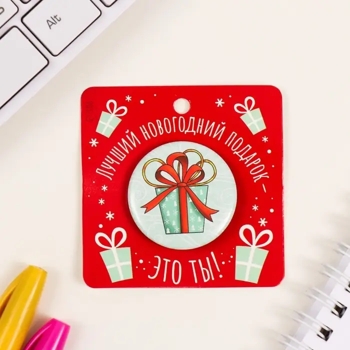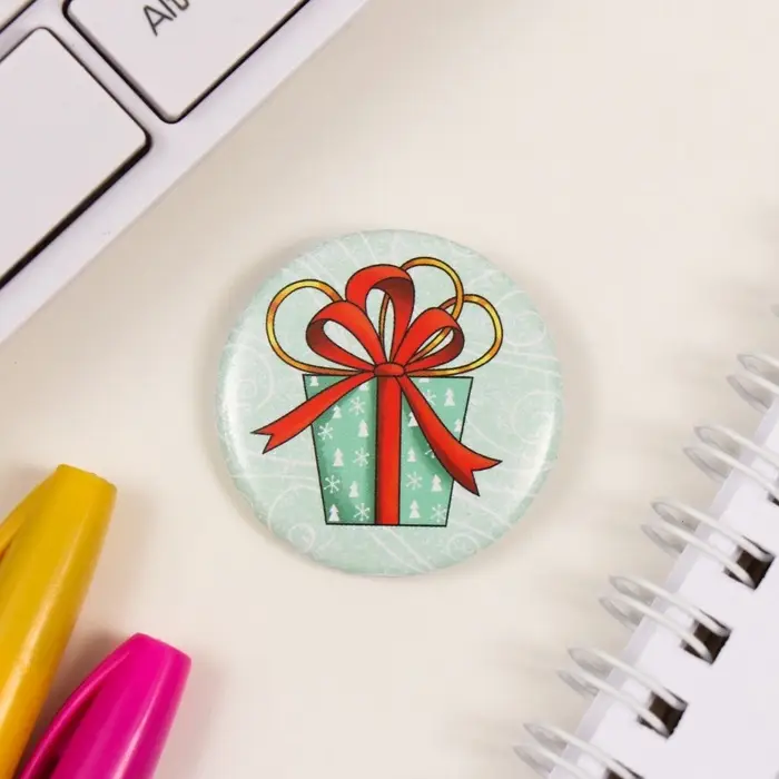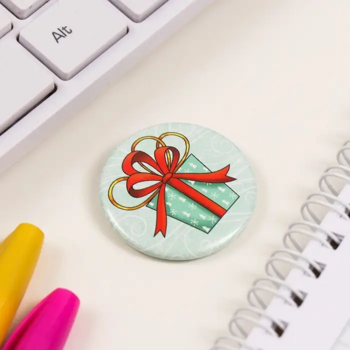 Значок закатной d=35 мм "Подарок" 6,5х6,5 см