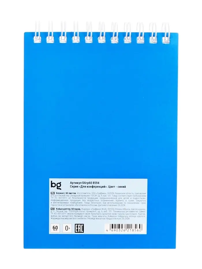 Блокнот А6, 60 листов в клетку, «Для конференций», на гребне, синий