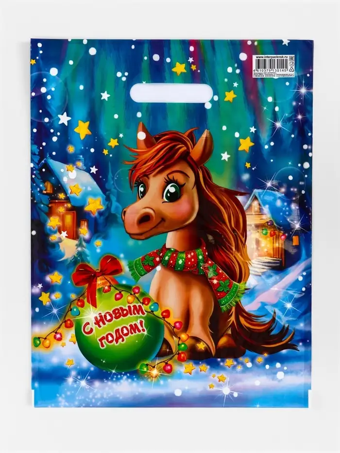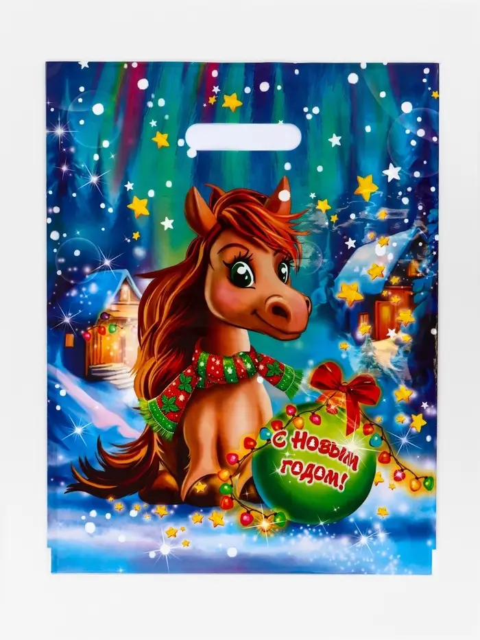Пакет "Лошадка", полиэтиленовый с вырубной ручкой, 31х40 см, 60 мкм