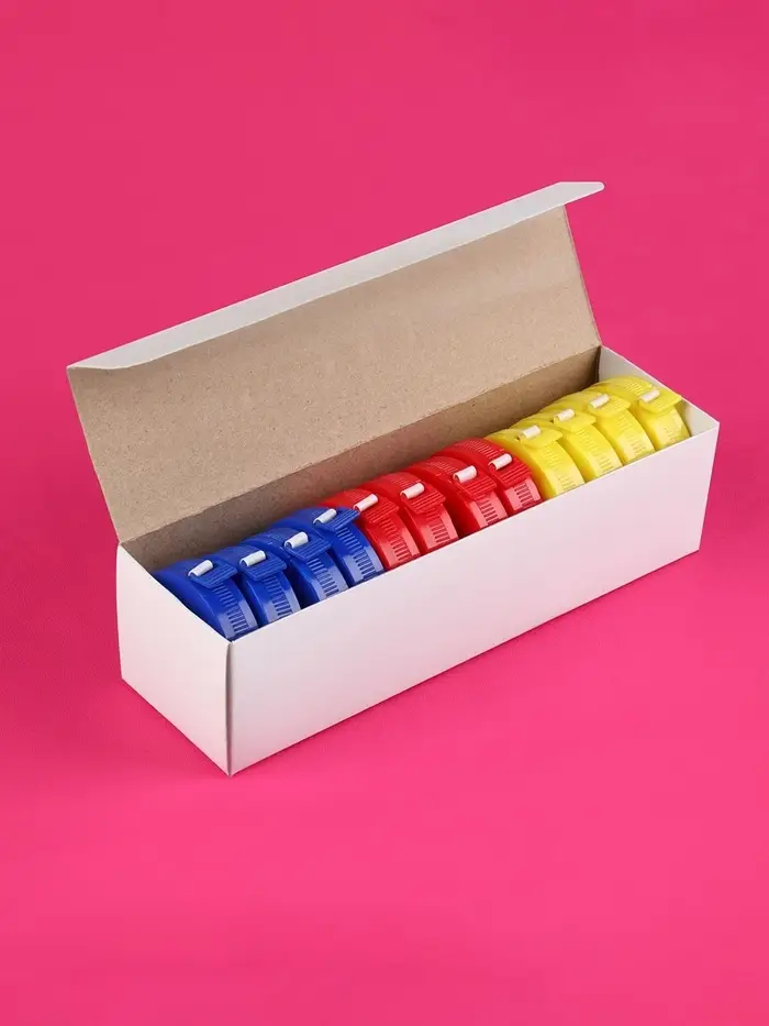 Небольшие круглые футляры обеспечат аккуратное хранение ленты и помогут избежать ее заломов. Длина ленты в 1,5 метра позволит снять все необходимые мерки и приступить к моделированию предметов одежды.