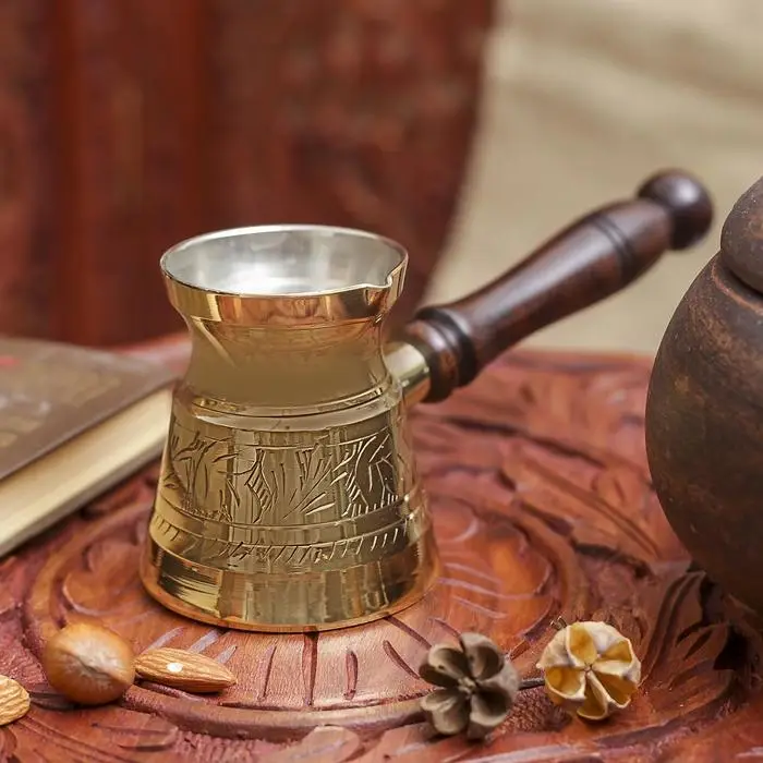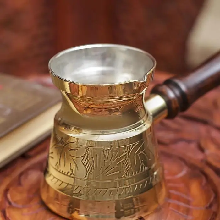 Не представляете своего утра без чашечки горячего и ароматного свежесваренного кофе? Тогда вам не обойтись без удобной и надежной турки, позволяющей превратить процедуру варки напитка в подлинный ритуал, доставляющий эстетическое удовольствие. Эффектная турка латунь "Кувшин" 100 мл будет ценным подарком для истинного гурмана!