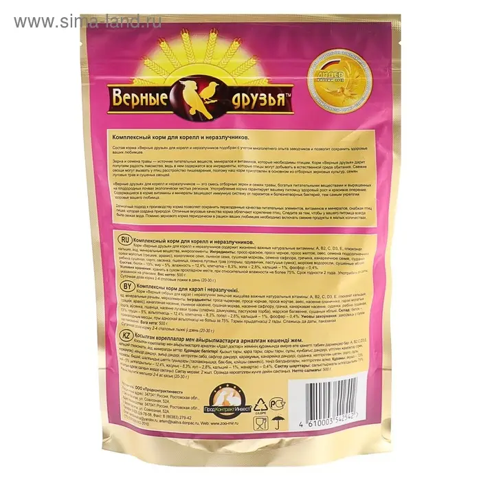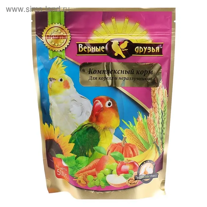 - Употребление корма гарантирует вашему питомцу здоровый рост и красивое оперение.